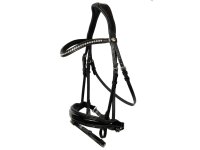 The curved browband made of high-quality black leather is trimmed with a shiny, brass-coloured clincher.
