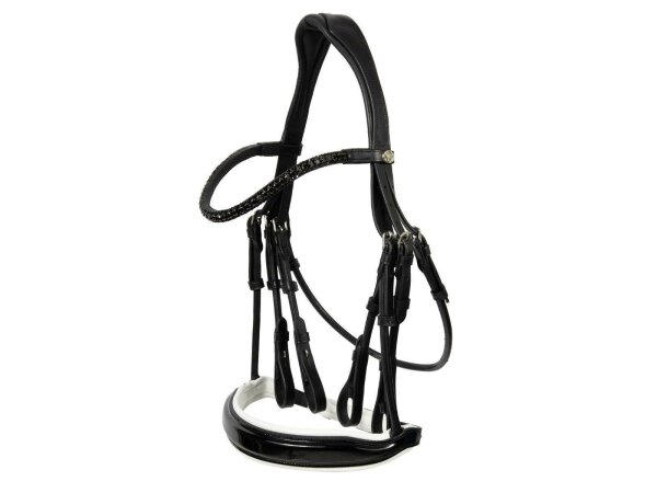 Kandare Aachen rundgenäht englisch schwarz/silber weiß unterlegt Lack