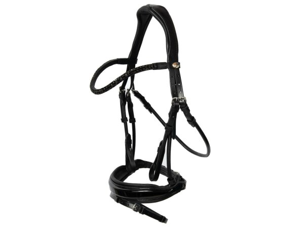 Trense Aachen rundgenäht englisch kombiniert schwarz/silber schwarz unterlegt Lack