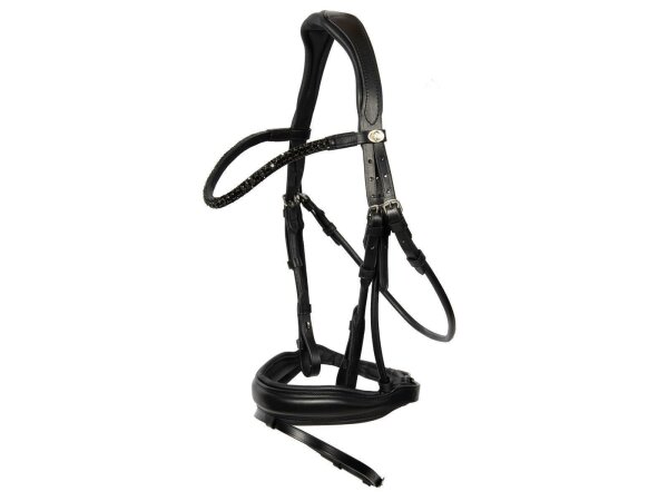 Trense Aachen rundgenäht englisch kombiniert schwarz/silber schwarz unterlegt matt