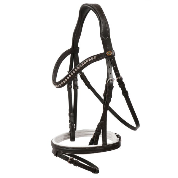 The Calgary bridle is extremely versatile. The English-style combined noseband is available in brown/silver. The browband is decorated with crystal rhinestones in diamond colours. What's more, this bridle offers excellent value for money.