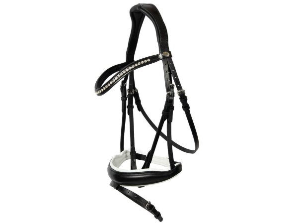 Trense Wiesbaden Comfort englisch kombiniert schwarz/silber weiß unterlegt matt
